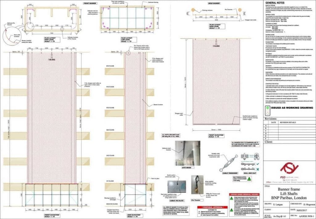 The banner itself measured 25 metres high by 18 metres wide, making it a substantial engineering feat even in ideal conditions—let alone in the middle of a busy, high-profile corporate building. The entire operation was conducted over two carefully choreographed weekends to minimise disruption to BNP Paribas’ operations.
