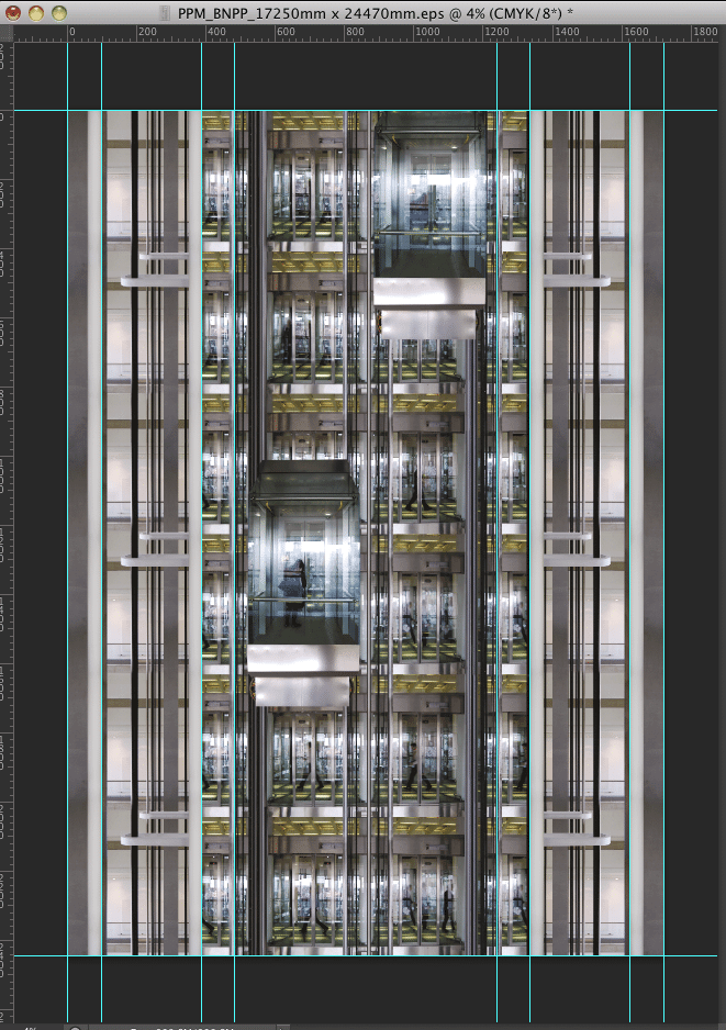 To ensure perfection, PPM worked alongside the BNP Paribas in-house design team. First, the riggers installed the cable guides and conducted a precise survey of all mounting points. From this, PPM created an accurate vector template—essentially a digital blueprint—onto which the final artwork could be dropped. The result? A truly impressive piece of visual design that looked as though it belonged as a permanent feature of the space.
